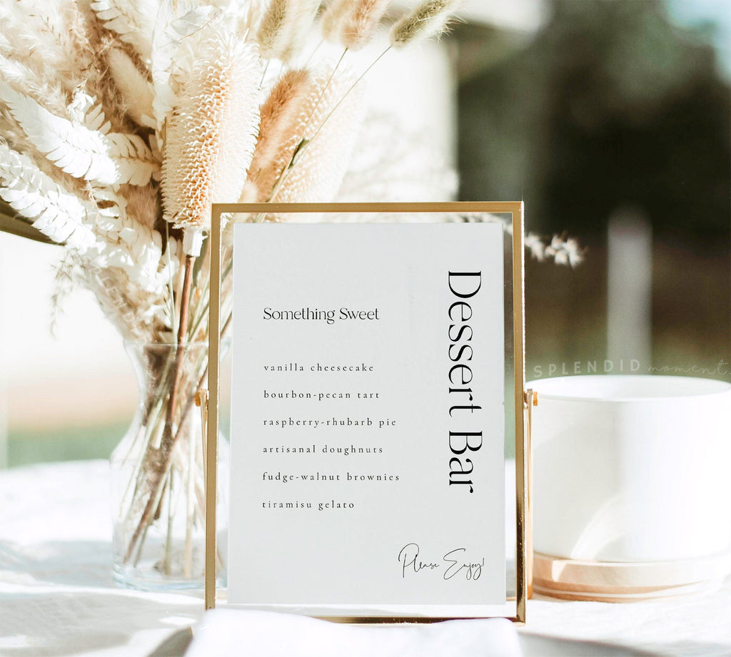 Use this modern dessert bar template for your wedding shower, rehearsal, reception, or other special events!